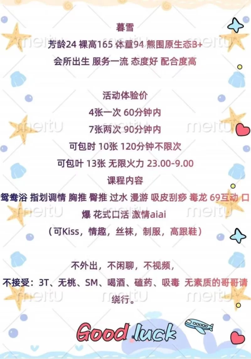 服务项目: 陪浴 波推 指滑 调情 按摩 毒龙 舌吻 69 口爆 爱爱 丝袜等