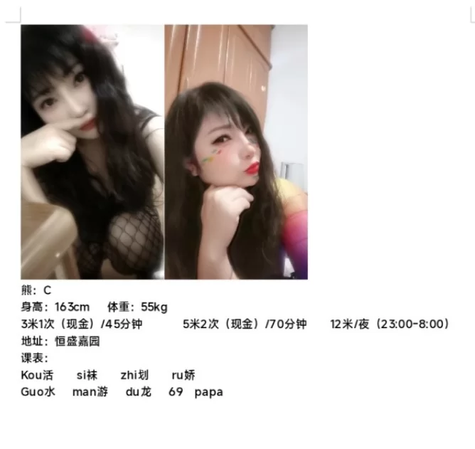 看上去照片真心很棒,很甜美,清纯,是我喜欢的类型,感觉就像邻家妹子一样小姑娘,才20左右,对我这样的老男人来说是致命的诱惑。我就决定去找她,见面了真心不错,照片有点美颜,真人比照片要素点,到了她的小窝,很温馨的房间,一点也不象那种红灯区的房间,就是一个纯粹的小姑娘的窝一样,让我想起了初恋时候的女孩,这妹妹很听话,开始就帮我脱了衣服,我们一起就进入卫生间一起洗澡,有生之来第一次用乳房搓澡的,不大不小却很滑溜。嫩滑的乳划过皮肤的感觉,狼友们深深的想象,之后出来就直接进入了主题,后续得情景就不再描述了。分享个很乖巧的妹子给狼友们,值得一去。 重点推荐:很甜美,清纯,是我喜欢的类型
